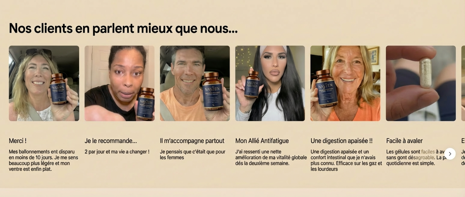Nayzen ne promet pas un effet immédiat artificiel. Il agit en profondeur, pour installer un équilibre durable et un vrai confort au quotidien.